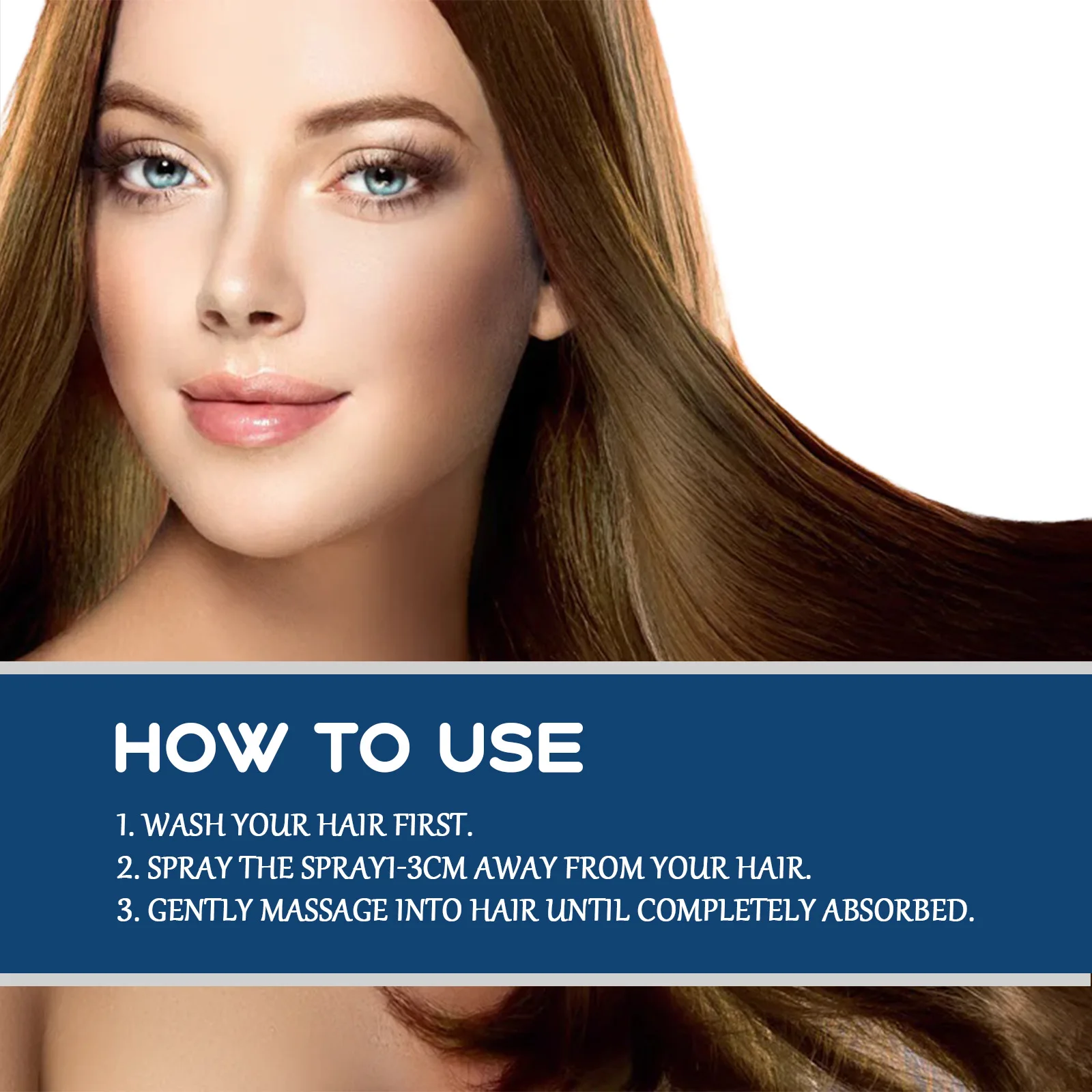 2.Spray the spray-3cm away from your hair.