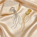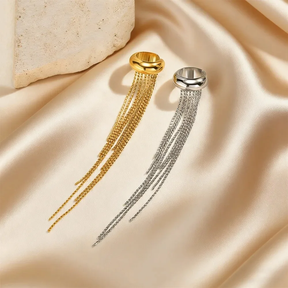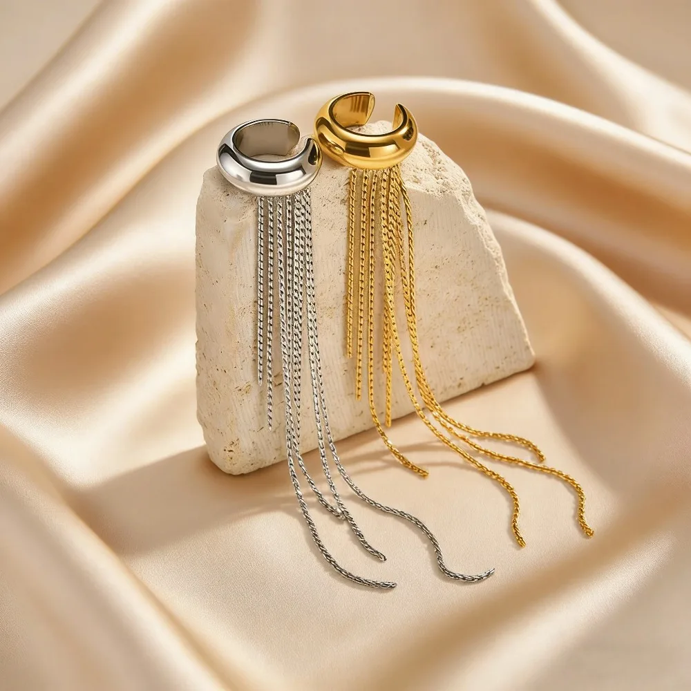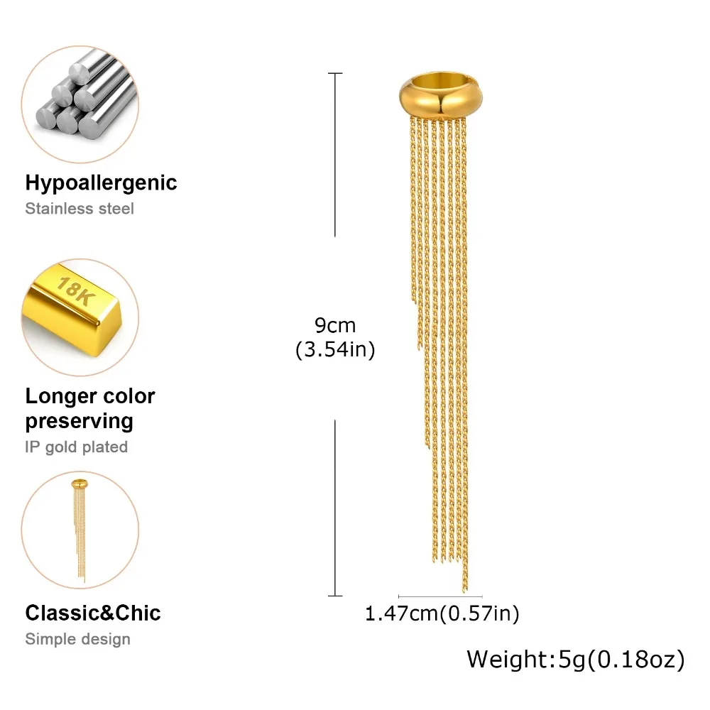 Fashion Long Tassel C-shaped Fake Piercing Ear Clip for Women Gold Plated Stainless Steel Ear Bone Clip on Earrings Ear Cuff