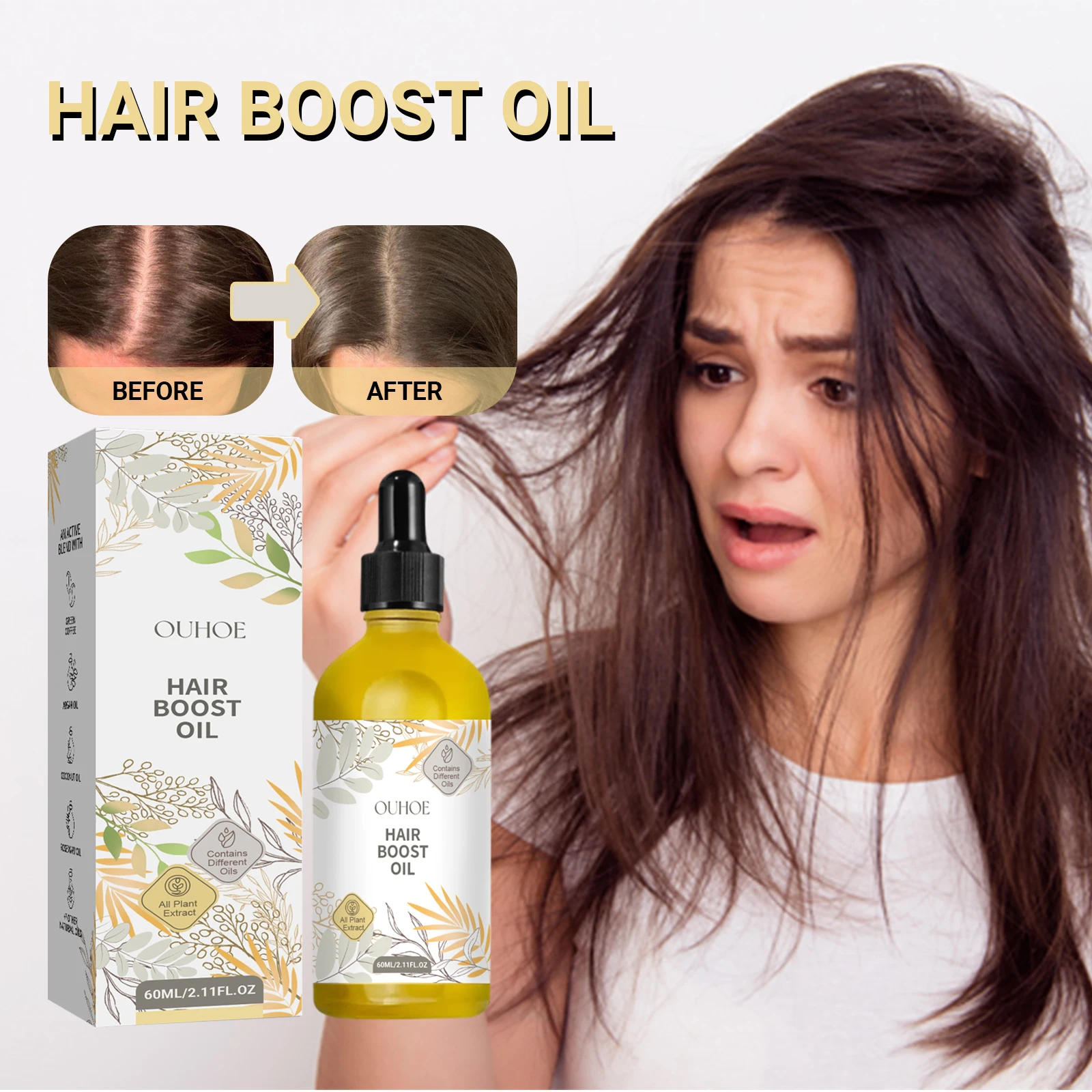 OUHOE Hair Boost Oil Dense Hair 2.11fl.oz (60ml) Makes Hair Thicker Healthier Promoting Hair Regeneration Caring Essential Oils